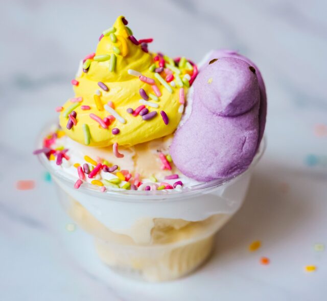 Treat yourself to our festive Peep Sundae, available exclusively during Easter Egg-Citement weekends! This springtime sweet starts with creamy vanilla custard, topped with fluffy marshmallow cream, whipped cream, colorful spring sprinkles, and finished with a classic Peep on top. It’s the perfect Easter treat for kids—and kids at heart.