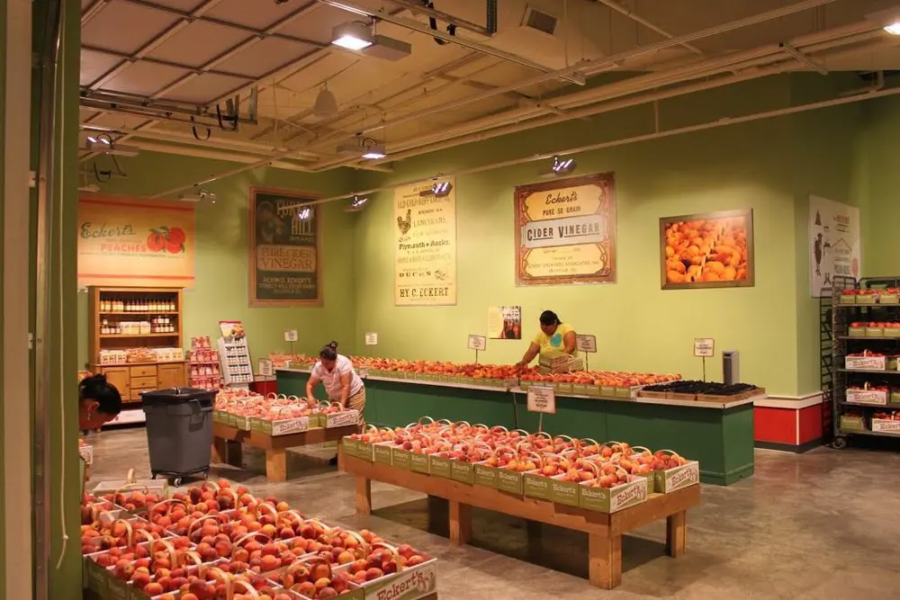 efficiently as possible. Since the freshest fruit comes directly from its source, it is our policy that peaches bought in our store were hanging on the tree less than two hours before you bought it!