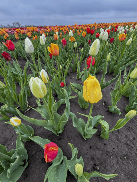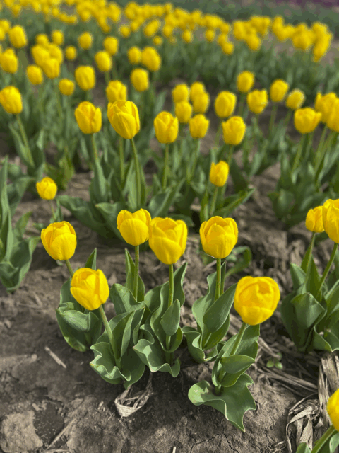 Wander through endless rows of vibrant tulips in every color imaginable.